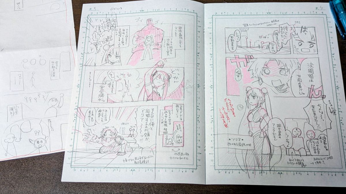 とりあえず今日つくった戦闘シーンをネーム起こし、、平日やれたらいいなぁっておもいます… 今日はミニネーム作業でおわったので、本ネームに向けてまた気持ち整えなきゃ。